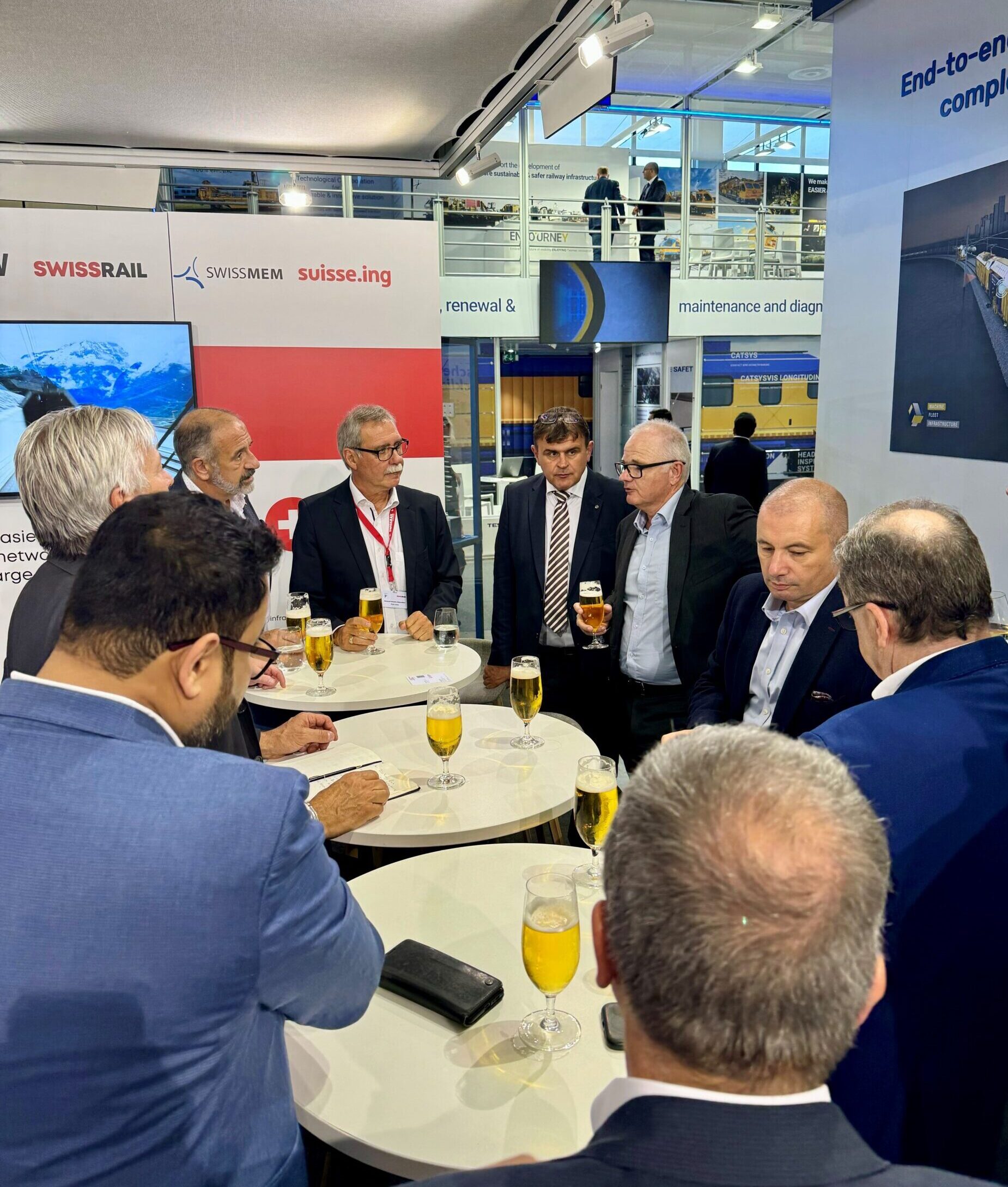 Das Team Switzerland Infrastructure war im Gemeinschaftspavillon der Swissrail Industry Association mit einem eigenen Stand vertreten und repräsentierte die Stärken und Kompetenzen der Schweizer Bahnindustrie. Während der vier Messetage führten die Vertreter über 30 intensive und erfolgreiche Gespräche, bei denen die Innovationskraft und das technische Know-how der Schweizer Unternehmen im Vordergrund standen. Besonders hervorgehoben wurden wegweisende technologische Lösungen sowie innovative Finanzierungsmodelle, die das breite Spektrum der Schweizer Bahnbranche verdeutlichten. Der Schweizer Stand entwickelte sich rasch zu einem lebendigen Dreh- und Angelpunkt für internationale Delegationen. Hochrangige Vertreter aus Ländern wie Brasilien, Chile, Indien und Saudi-Arabien besuchten den Stand, um sich über aktuelle und zukünftige Entwicklungen in der Bahnindustrie zu informieren. Die Messe bot dem Team Switzerland Infrastructure eine hervorragende Gelegenheit, mit führenden internationalen EPCs (Engineering, Procurement and Construction), staatlichen Behörden und Betreibern ins Gespräch zu kommen. Gemeinsam wurden große Infrastrukturprojekte diskutiert, die vielversprechende Möglichkeiten für zukünftige Kooperationen auf globaler Ebene eröffnen.